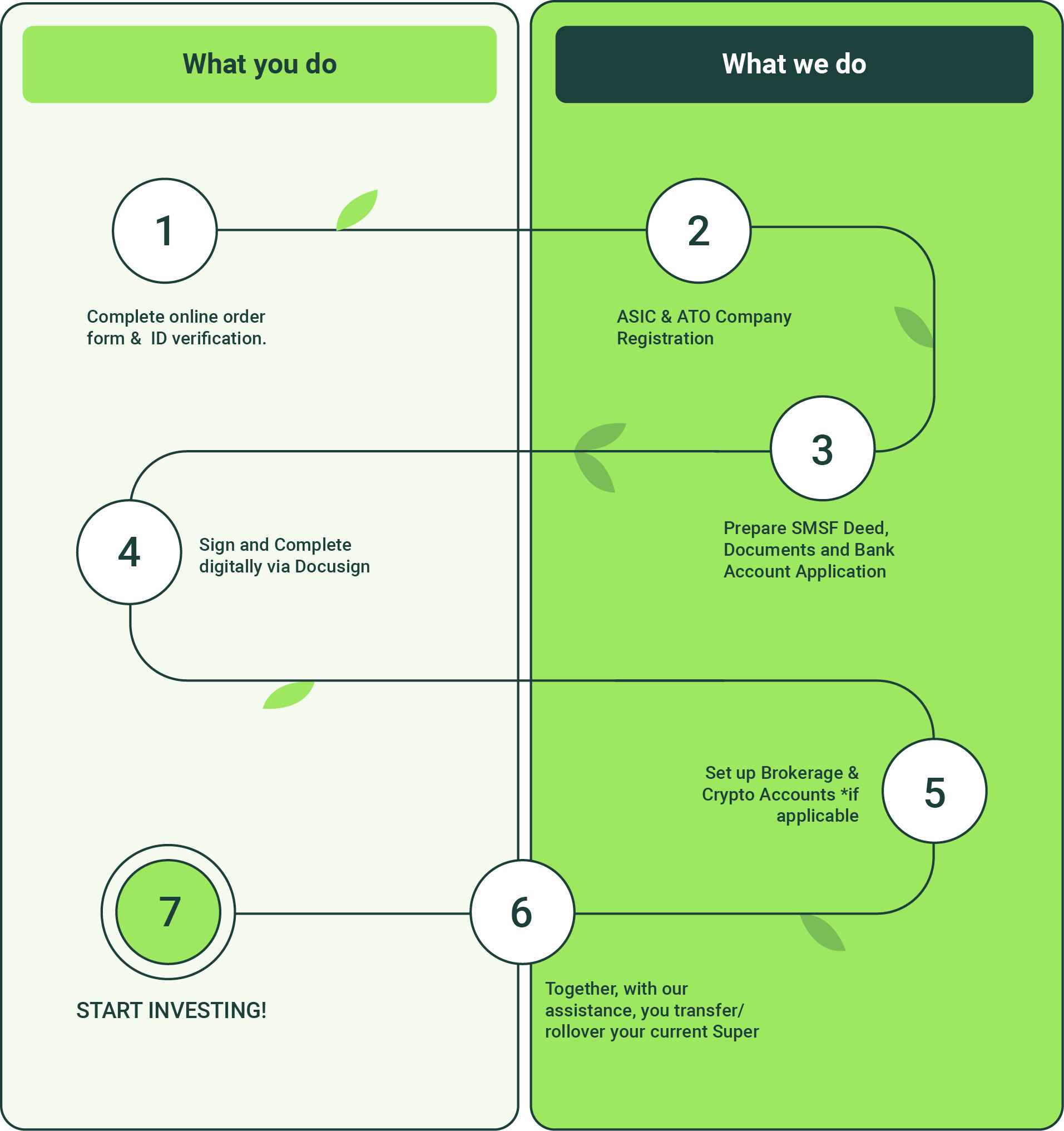 We handle the setup and administration, while you remain in control of your SMSF and make the investments you want